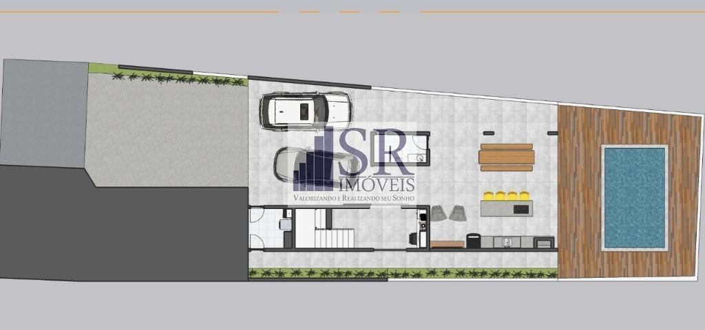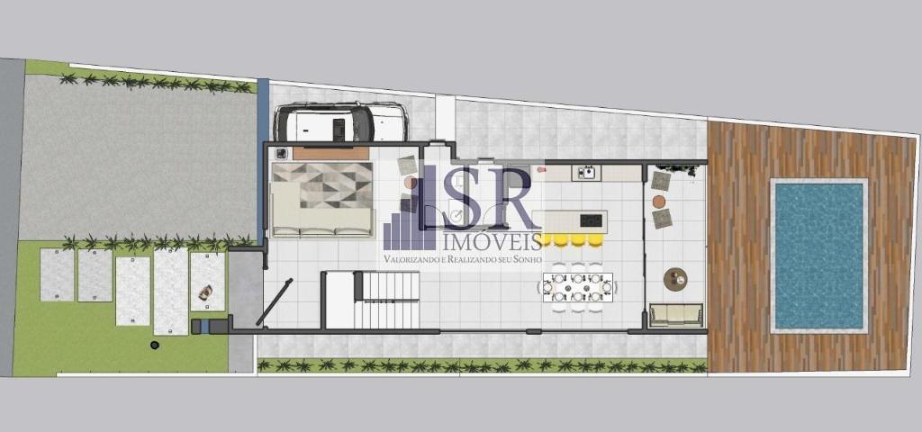 Garagem coberta para três carros, Depósito, Lavanderia, Hall de entrada da garagem, wc de apoio, área churrasqueira, piscina.